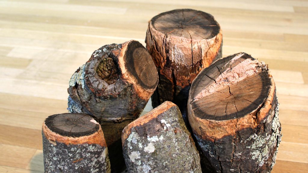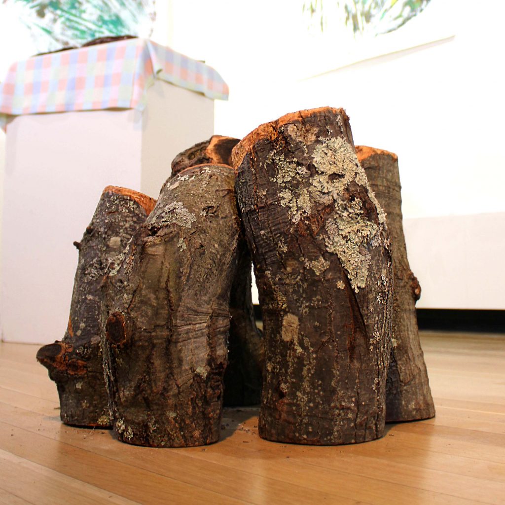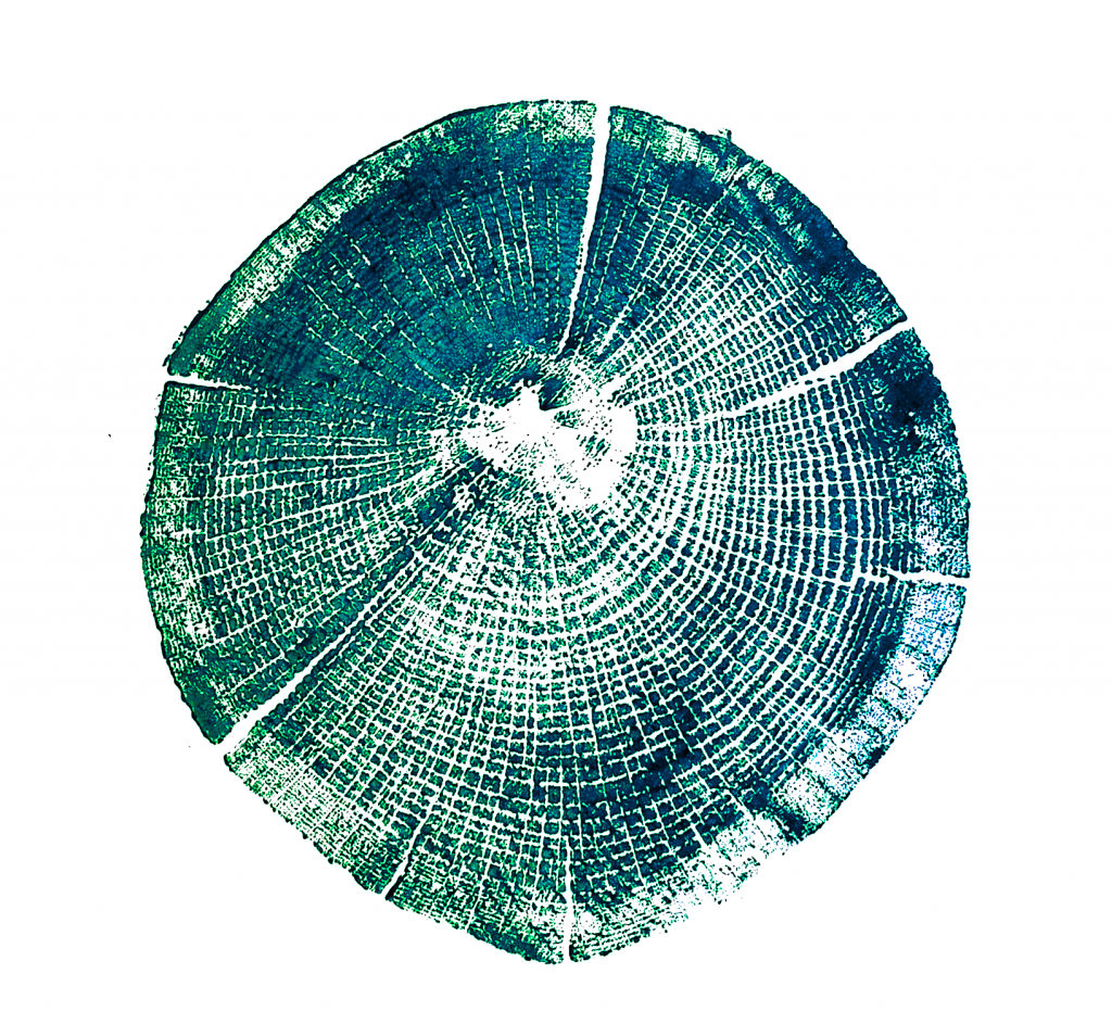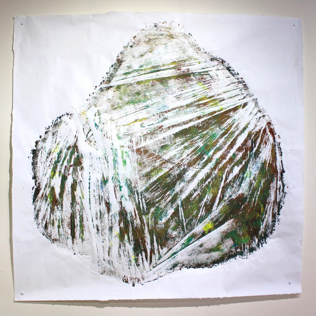 acrylic paint, my fingerprints, log slice prints, raw canvas, my favorite filbert brush, projections, picking up the pieces, and memory