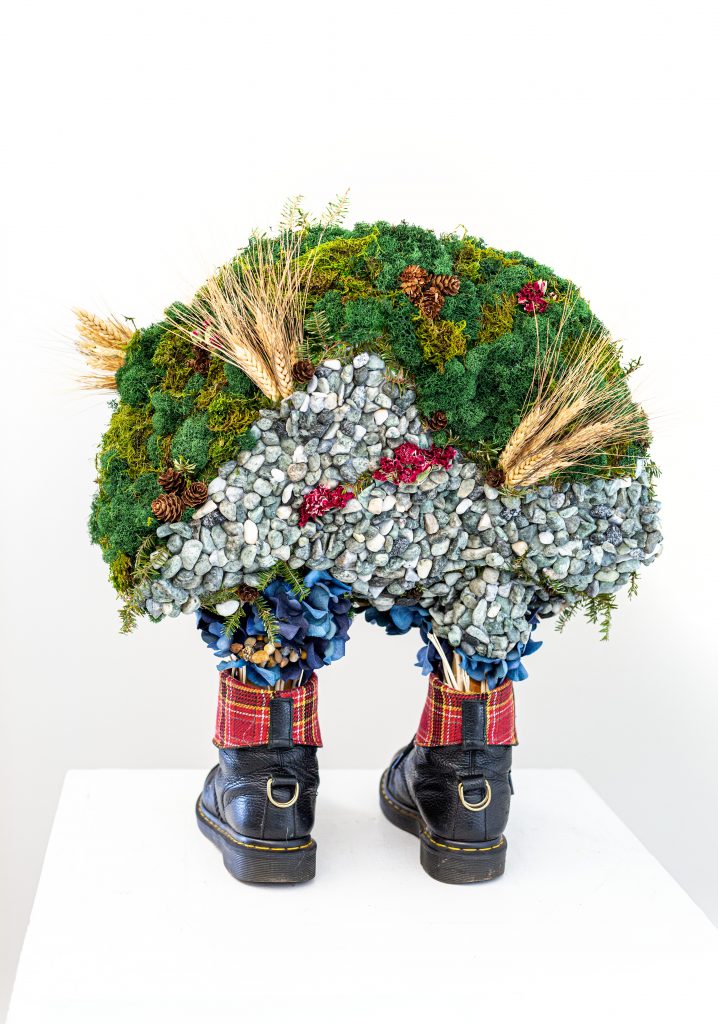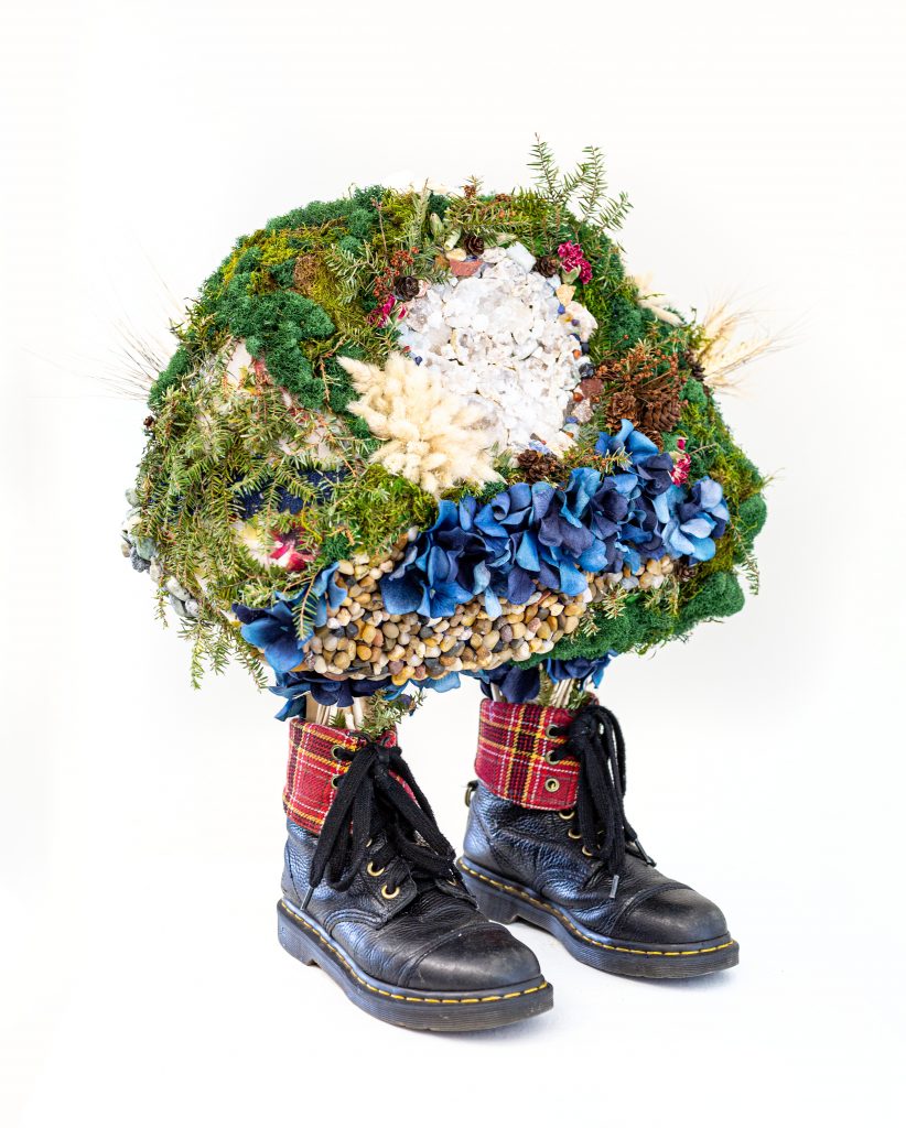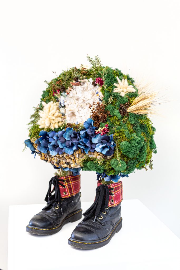 wood, cardboard, paper, cycles, hot glue, found objects, crystals, geodes, foliage, self love, and memories